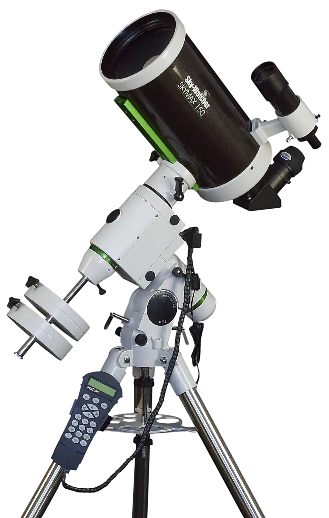 Die Sky-Watcher SKYMAX-150 HEQ-5 R PRO SynScan ist ein Maksutov-Cassegrain-Teleskop der Spitzenklasse, das für fortgeschrittene und begeisterte Amateurastronomen entwickelt wurde, die von einem leistungsstarke Optik in Kombination mit einem robusten und präzisen äquatorialen Rahmen. Dank seines Durchmessers von 150 mm und seiner langen Brennweite ist es ideal für die detaillierte Beobachtung von Mond, Planeten und Doppelsterne, Sie können aber auch helle Deep-Sky-Objekte betrachten.